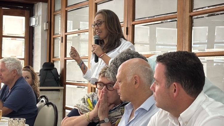 Después de visitar las esculturas y el hermoso lugar, la Comunidad de Barranquilla, el CIF, ofreció en las instalaciones del Club un delicioso almuerzo a los visitantes de fuera de la ciudad donde estaba la presidente del Centro Israelita Filantrópico (CIF) Cheryl Watemberg, quien dirigió valiosas y afectuosas palabras dándole la palabra al representante del Gobierno de Israel Kobi Valer.