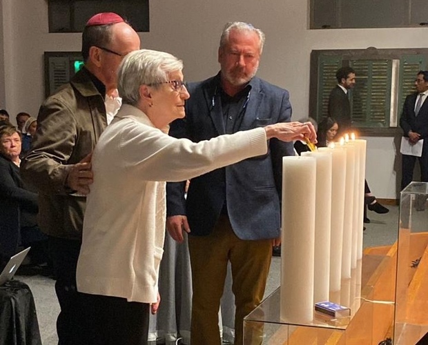 ND: Las tradicionales velas fueron encendidas por sucesores de sobrevivientes: Donald Kirschberg, Alberto Kopec, Hermanos Halstuch, Eduardo Translateur, Tommy y Hanna Chaskel, Jack Goldstein, Miriam May, Raquel Gúterman, Myriam y José Leibovich e Inge Fröelich.